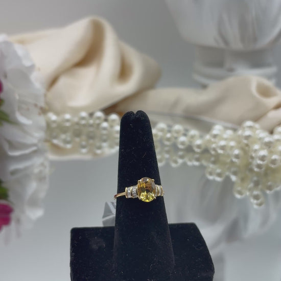 10K Yellow Gold AAA Brazilian Heliodor, Luxuriant Lab Grown Diamond (VS) Empire Gleam Ring